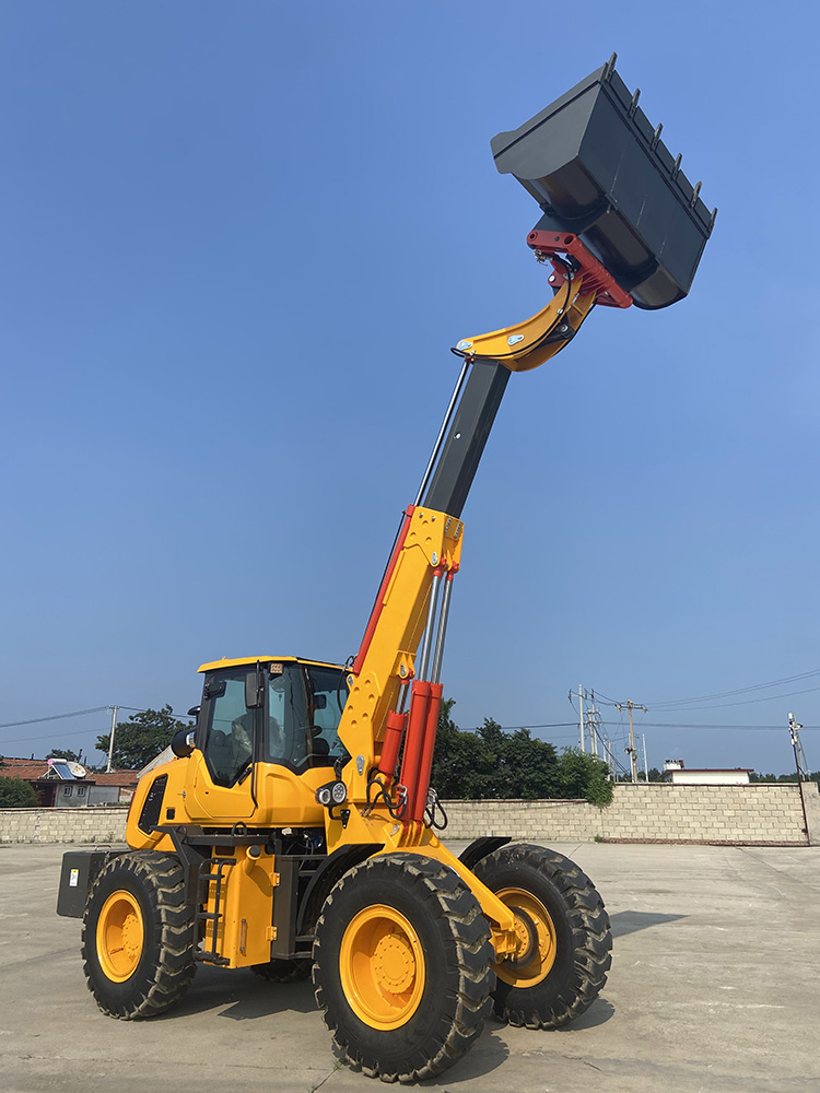 四輪驅動,具有兩輪轉向、四輪轉向及蟹行轉向模式,越野能力強,適應不同作業場合;兩頭忙,伸縮臂裝載機。